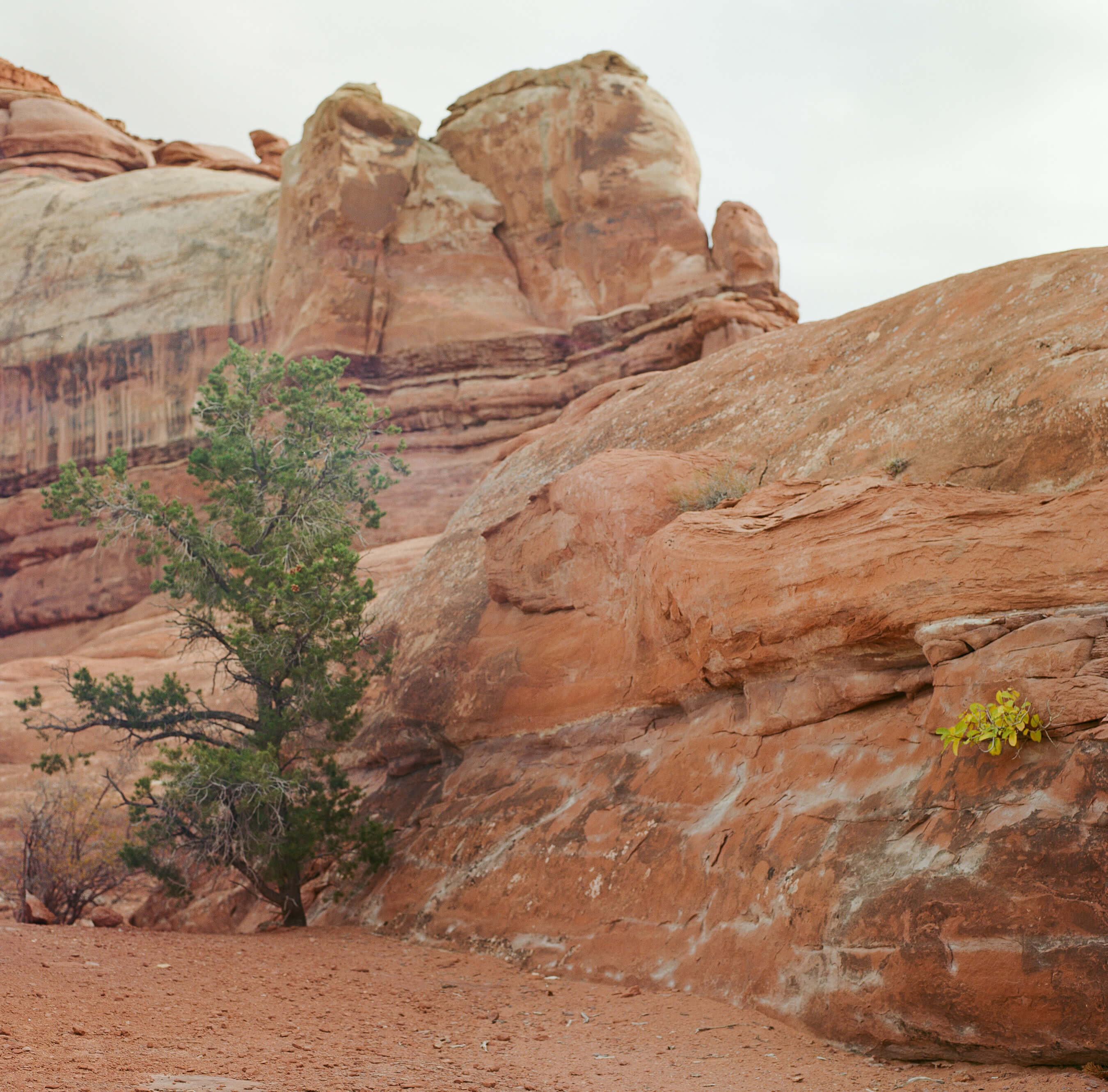 Just off the trail, I find a dinner-table slab of angled sandstone, perfectly inclined to lay against. A branching juniper is close enough overhead to catch its sharp, bitter scent. The canyon walls curve dizzyingly behind me, still, still. Fifteen minutes pass, then thirty.