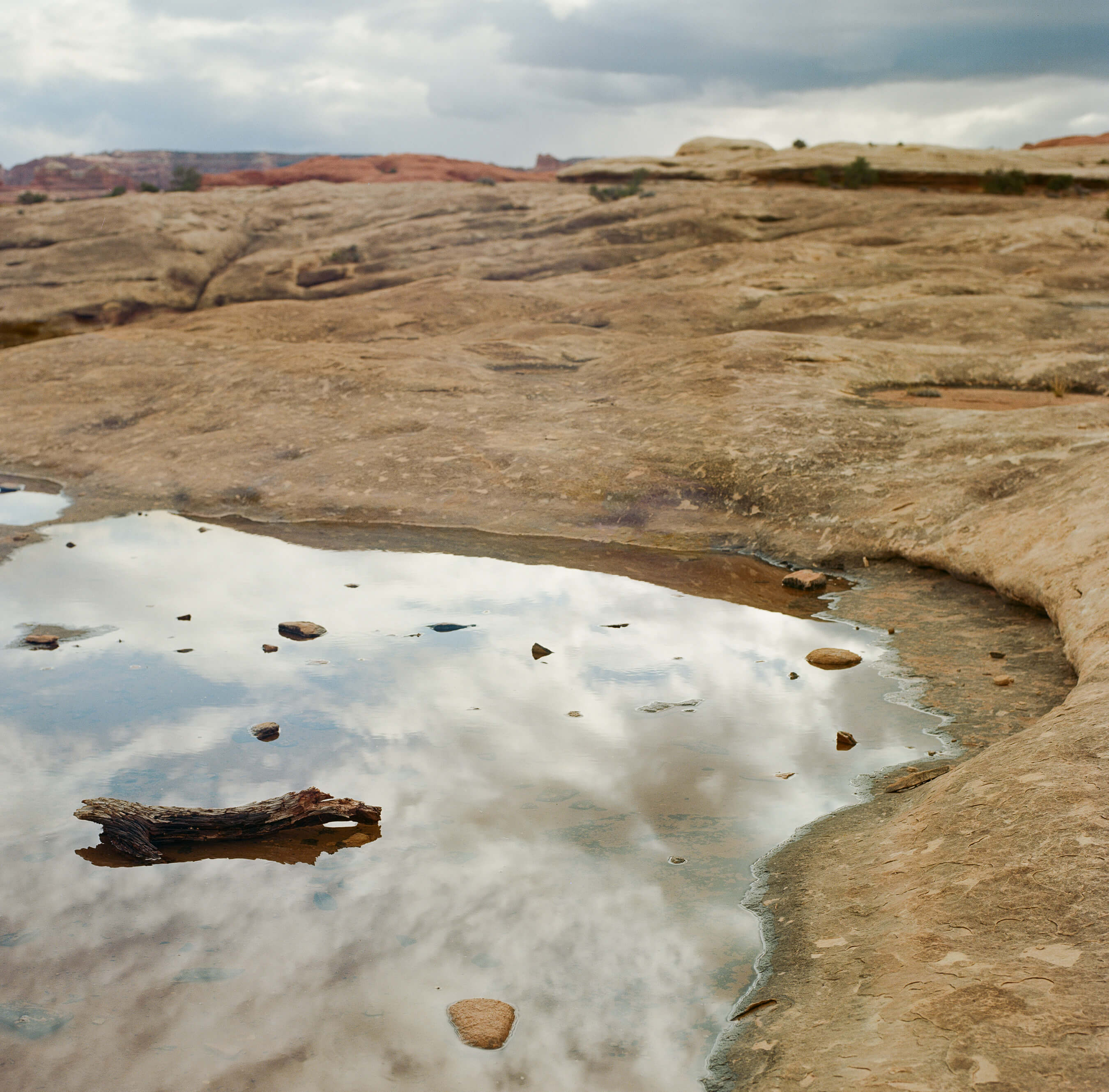 From creekbed to drainage wash, the hard ribbed rock gives the impression of frozen waves, crests rounded smooth over generations. Only a mile from the parking lot, it already feels as if the desert has swallowed me whole. Sitting down on a bank of sand, I look across deer track leading towards a murky, silty pool of water. Beside me, an unintelligible track, so lightly pressed into the sand it seems impossible it was attached to a living, breathing, body.